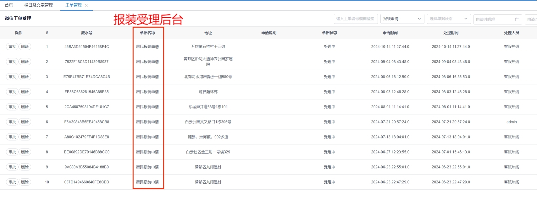 1.報裝辦理入口操作截圖