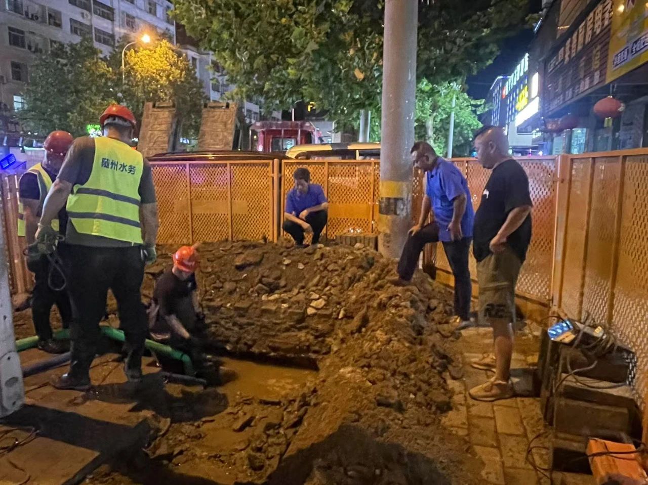 2024年2月4日22時許,隨州市水務(wù)集團(tuán)24小時供水服務(wù)熱線3318118接到用戶反映稱,季梁大道與交通大道交叉口附近疑似出現(xiàn)管道漏水情況。當(dāng)時隨州正遭遇著一場歷史少見的低溫雨雪冰凍災(zāi)害天氣,通往現(xiàn)場的路面上被凍雨和冰雪覆蓋,車輛難以通行。然而“災(zāi)情就是命令”,面對持續(xù)漏水可能造成更加嚴(yán)重的后果,周新和他的“黨員突擊隊”迎寒而上,冒雪“逆行”,克服重重困難抵達(dá)現(xiàn)場,連夜展開搶修工作。經(jīng)過現(xiàn)場勘查,終于查找出漏水原因。但在嚴(yán)寒天氣下,機(jī)械進(jìn)出困難,給搶修帶來了極大難度。