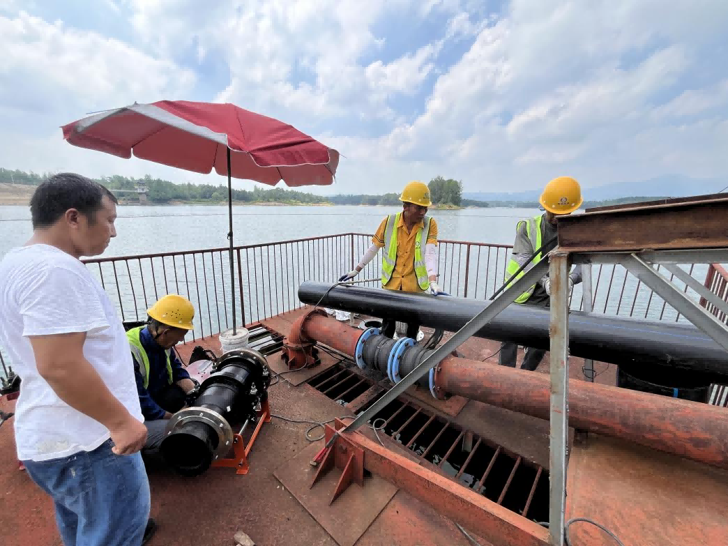 受持續(xù)干旱影響,水庫(kù)水位急劇下降,源水取水面臨嚴(yán)峻挑戰(zhàn)。公司迅速行動(dòng),針對(duì)不同情況精準(zhǔn)施策:針對(duì)沙河口水廠(chǎng),緊急完成配電設(shè)備改造升級(jí),確保取水泵機(jī)組在極端條件下穩(wěn)定運(yùn)行;針對(duì)柳林白果河水庫(kù)取水點(diǎn),因水庫(kù)水位過(guò)低取水困難,果斷將取水口向上游遷移1公里,有效保障源水供應(yīng)和水質(zhì)安全;針對(duì)殷店天河口水廠(chǎng)制水能力不足問(wèn)題,緊急增設(shè)取水泵機(jī)組,提升水廠(chǎng)產(chǎn)水能力,確保供水穩(wěn)定。